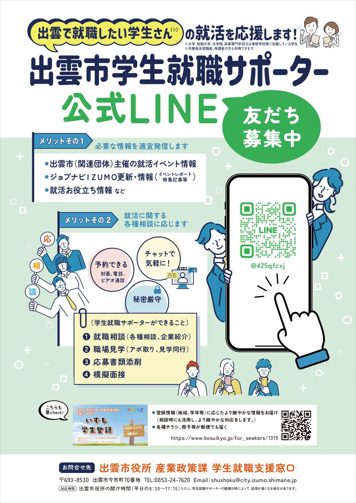 「出雲市学生就職サポーター公式LINE」友だち募集中